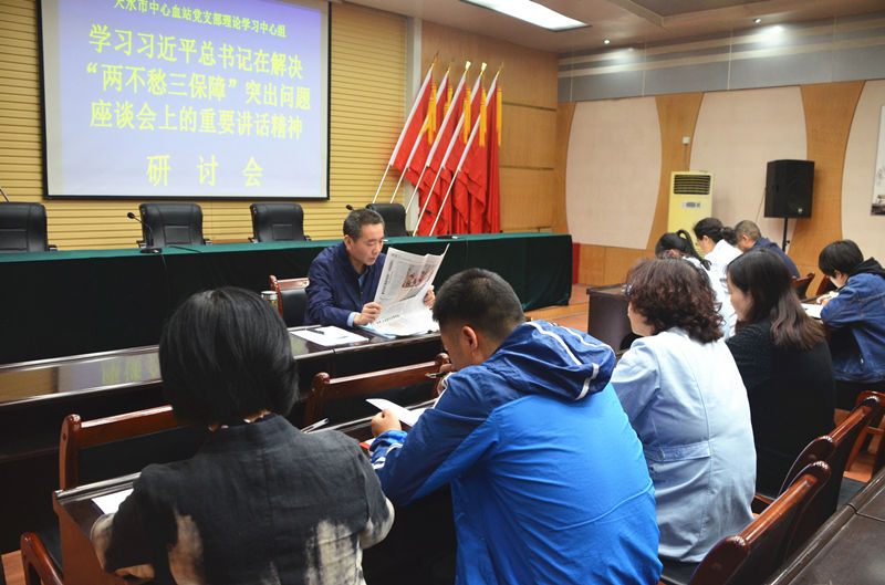 5月17日,市中心血站党支部理论学习中心组组织开展学习习近平总书记在解决“两不愁三保障”突出问题座谈会上的重要讲话精神专题研讨会,血站党支部理论学习中心组全体人员参加了专题学习研讨会。