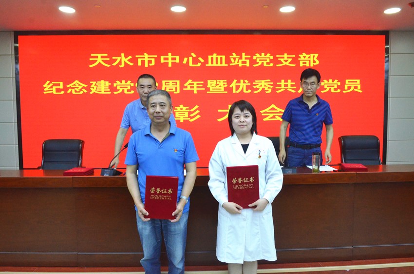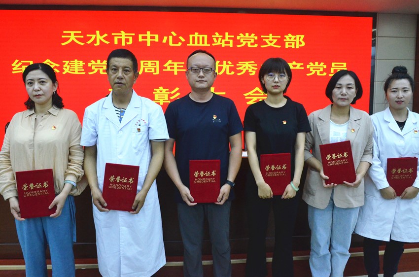 会上,市中心血站党支部副书记、副站长苏建伟宣读了《中共天水市委卫生健康工委关于表彰优秀共产党员、优秀党务工作者和先进基层党组织的决定》和《中共天水市中心血站支部委员会关于表彰2020年度优秀共产党员和优秀党务工作者的决定》。大会对荣获市卫生健康系统的1名优秀共产党员、1名优秀党务工作者以及荣获市中心血站的7名优秀共产党员和1名优秀党务工作者进行了表彰。苏建伟在讲话中简要回顾了中国共产党的发展历程,同时对全体党员如何做好下半年的工作提出了要求。