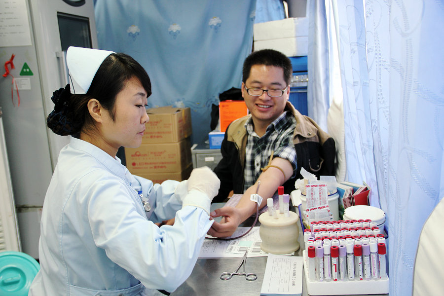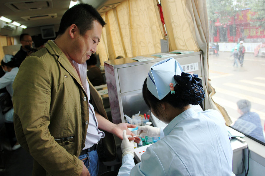 县卫生局局长汪双家说:“每一位献血者献血前都要经历的步骤是:填写个人信息、身体状况、量血压、称体重、验血型、查乙肝和转氨酶,经过这一系列过程后就可以献血。”在献血者健康状况征询表中,记者看到有好几十项有关于身体各项指标的问答,只要有一项不符合要求,这次就不能参与献血。 市民马葡萄这次兴致勃勃地来献血,说这是她第一次献血,当记者问她第一次会不会紧张,她显得很勇敢,但当她去车上做血液检查时被告知转氨酶偏高,达不到献血标准,不能献血,她显得有些失望。