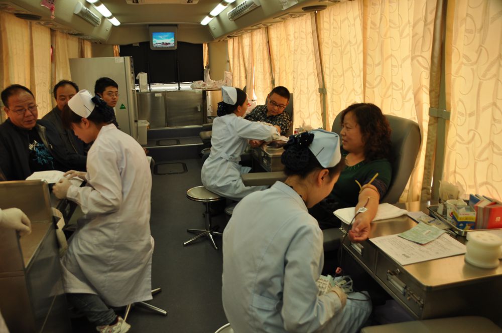 副局长熊丽华,第一个走上采血车捋袖献血,当医护人员问她是否是第一次献血时,她微笑着说这已经是她第三次献血了。有好几个老同志也走上了采血车,因为年龄原因,在叹气声中走下了采血车。有些同志边献血边自豪地说,这已是他们的第四本献血证了!甚至有些同志还要让采血护士给他多抽些,当医生告知他一次献血最多不能超过400毫升使,他们微笑着说过半年还来献血。小张200ml,小李300ml,小刘400ml.....。短短一个多小时,就有20多人参加了这次献血活动,献血量达2300ml。 这就是秦州区人口计生局的干部职工,他们用自己爱的实际行动去救治医院里那些急需血液而挽救生命的患者!