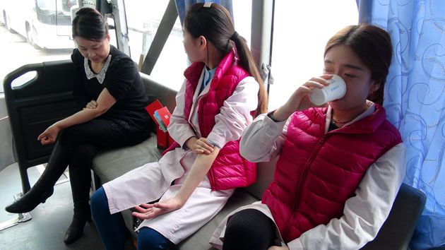 4月6日早晨,市中心血站的流动采血车刚停到院内,一群可爱的白衣天使陆续从流动采血车上走下来,在血站工作人员的引导下,来到体检室。原来她们是一群来自天水女子医院的护士,专程来血站捐献血液、传播爱心的。