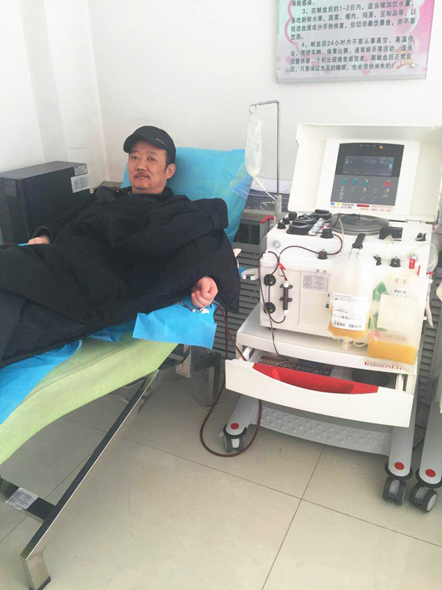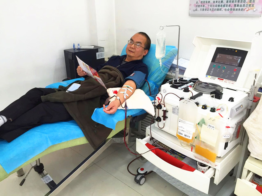 3月7日,龙永君又一次来到解放路爱心献血屋捐献血小板,这是他第20次捐献血小板。 由于机采血小板采集的特殊性,捐献一个治疗量的机采血小板,算上路途、血液初检以及采集过程差不多要3个小时的时间。每当医院有重病人需要输注血小板时,只要血站的一个预约电话,龙永君都会毫不犹豫,放下手头的工作前来捐献血小板。多年来,他先后捐献全血1300毫升,捐献机采血小板20个治疗单位。 当问道是什么原因能让他如此执着于无偿献血时?他认为:他的爱心会传给另一个人,他的血液会延续另一个人的生命,爱会传承。他用朴实简单的话语,折射出了一个普通献血者的高尚心灵。他用爱心传播人间善举,他用自己的实际行动,诠释了什么叫正能量,什么叫大爱无疆。