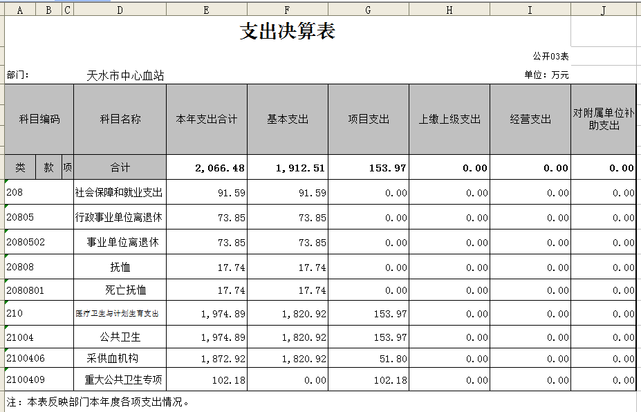 7.一般公共服务(类)纪检监察事务(款)派驻派出机构(项):指由纪检监察部门负担的派驻各部门和单位的纪检监察人员的专项业务支出。 8.结余分配:指事业单位按照会计制度规定缴纳的所得税以及从非财政拨款结余中提取的职工福利基金、事业基金。 9.年末结转和结余:指单位按有关规定结转到下年或以后年度继续使用的资金。 10.基本支出:指为保障机构正常运转、完成日常工作任务而发生的人员支出和公用支出。 11.项目支出:指在基本支出之外为完成特定行政任务和事业发展目标所发生的支出。 12.经营支出:指事业单位在业务之外开展非独立核算经营活动发生的支出。 13.“三公”经费财政拨款支出:指通过财政拨款资金安排的因公出国(境)费、公务用车购置及运行费和公务接待费支出。其中,因公出国(境)费指单位工作人员公务出国(境)的往返机票费、住宿费、伙食费、培训费等支出;公务用车购置及运行费指单位购置公务用车支出及公务用车使用过程中所发生的租用费、燃料费、维修费、过路过桥费、保险费等支出;公务接待费指单位按规定开支的各类公务接待(含外宾接待)支出。 14.机关运行经费:指为保障行政单位(含参照公务员法管理的事业单位)运行用于购买货物和服务的各项资金。包括办公及印刷费、邮电费、差旅费、会议费、福利费、日常维修费、专用材料以及一般设备购置费、办公用房水电费、办公用房取暖费、办公用房物业费、公务用车运行维护费以及其他费用。