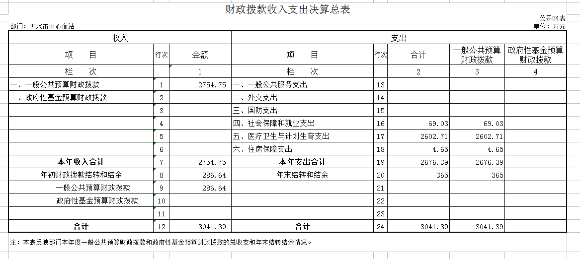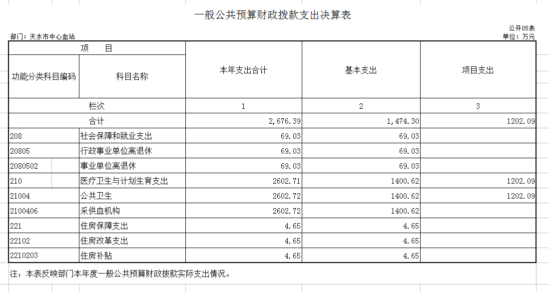 天水市中心血站2018年度部门决算公开说明