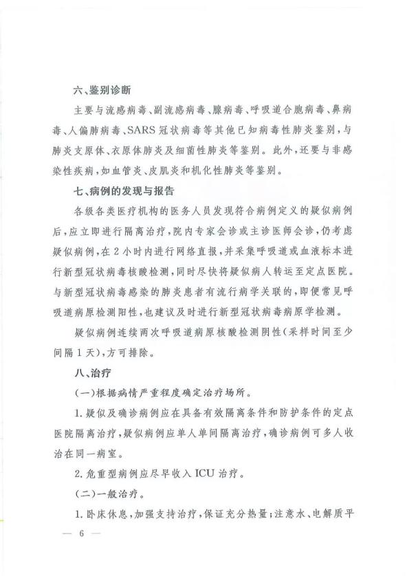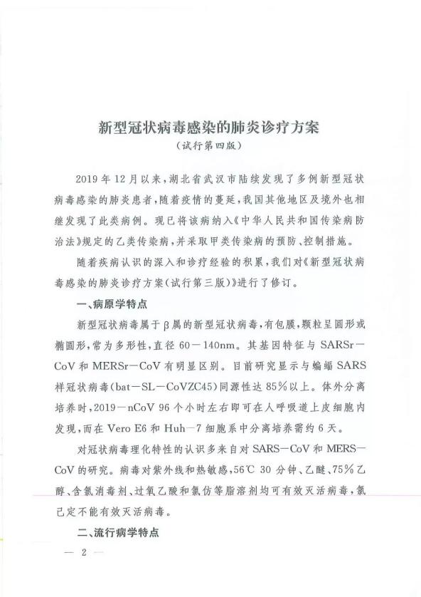 关于印发新型冠状病毒感染的肺炎诊疗方案(试行第四版)的通知