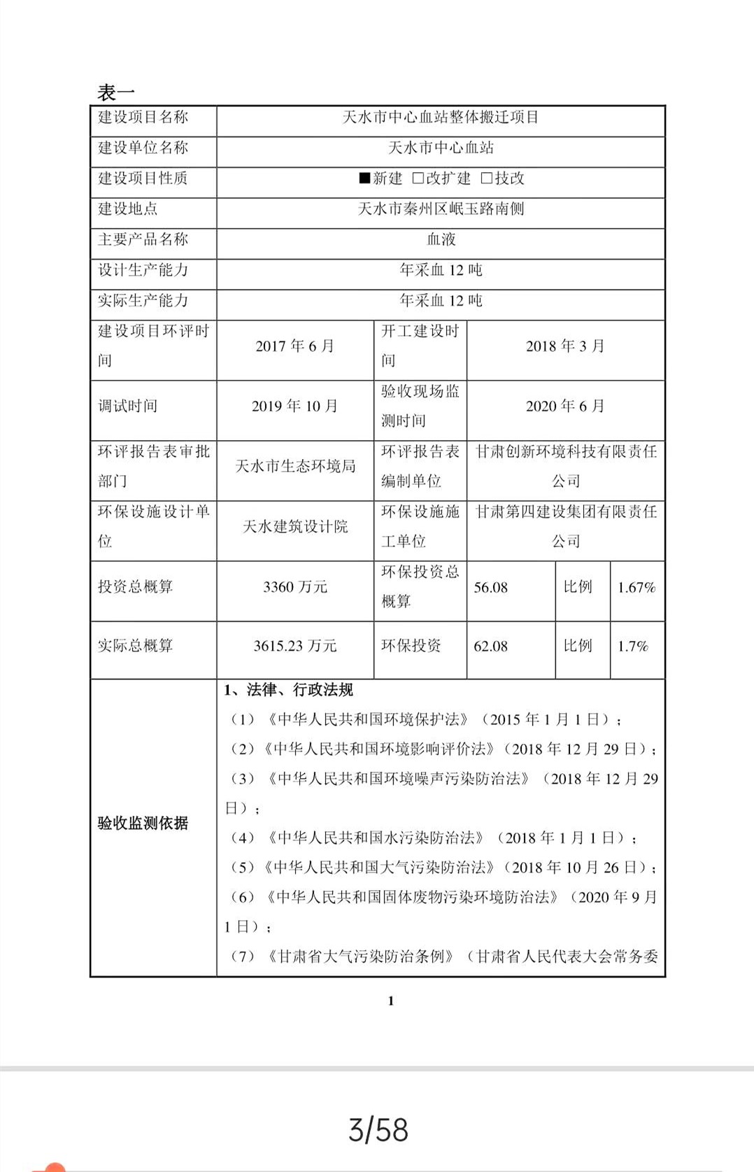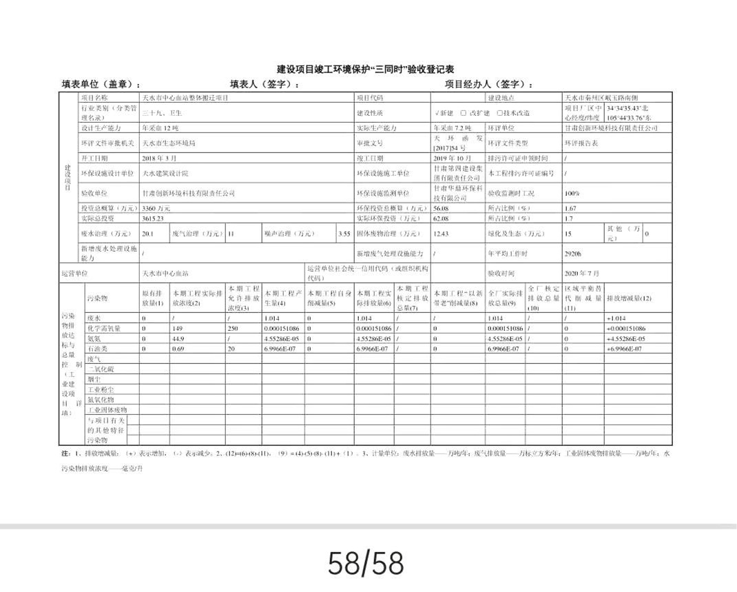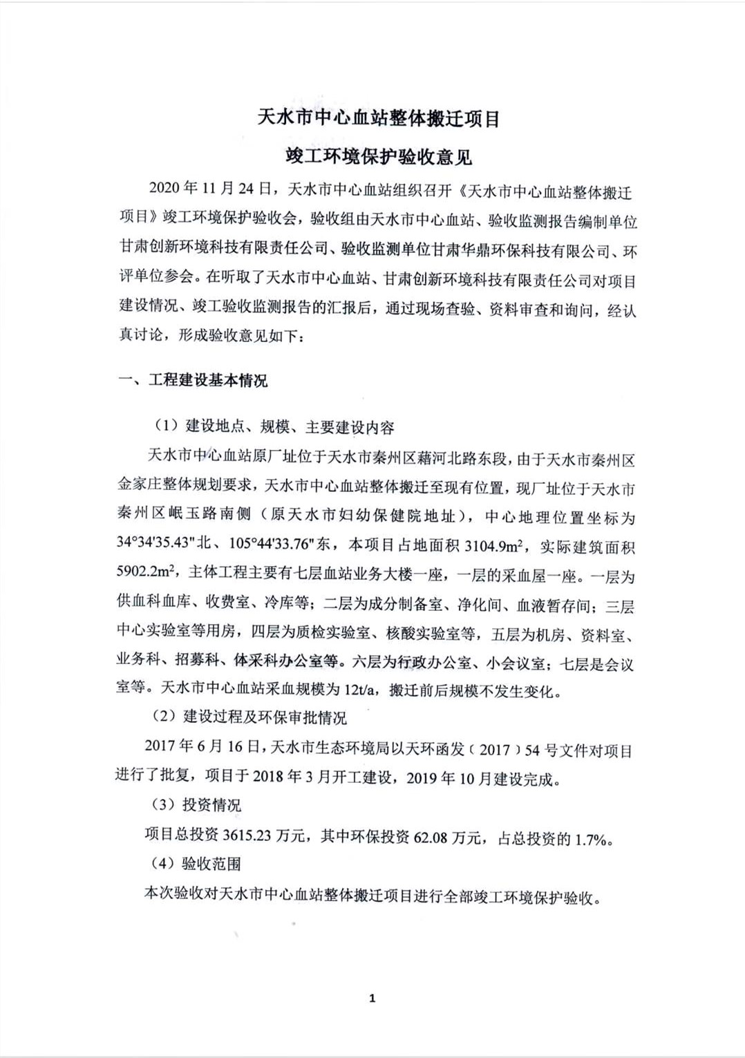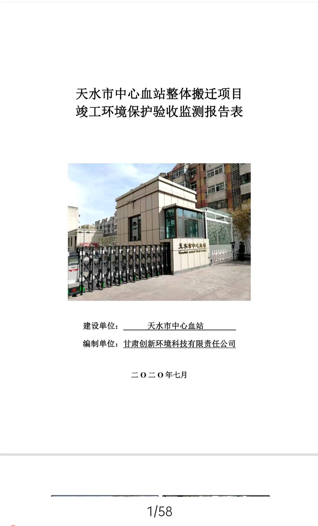 根据《国务院关于修改〈建设项目竣工环境保护管理条例〉的决定》(国务院令第682号),以及环保部《关于发布<建设项目竣工环境保护验收暂行办法>的公告》(国环规环评﹝2017﹞4号),现将天水市中心血站整体搬迁项目竣工环境保护验收内容(包括验收监测报告、验收意见)公示如下: