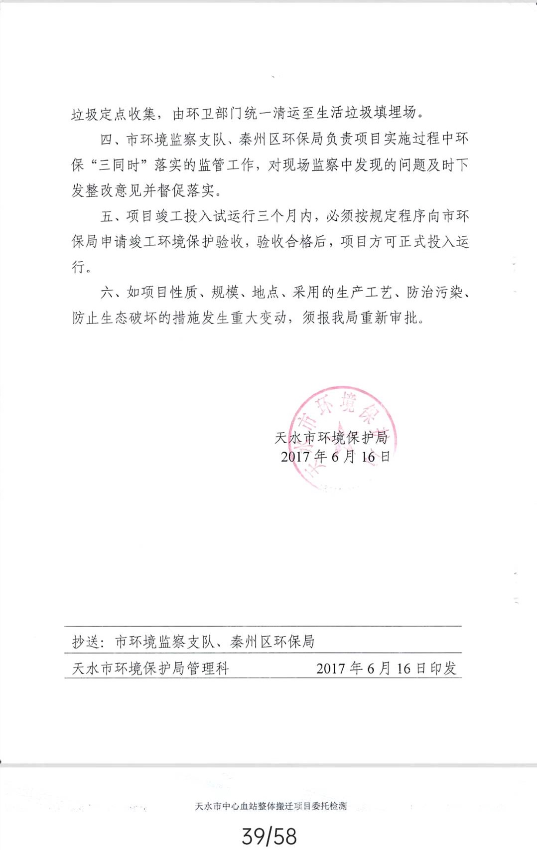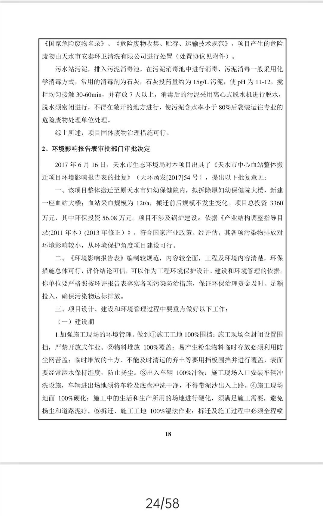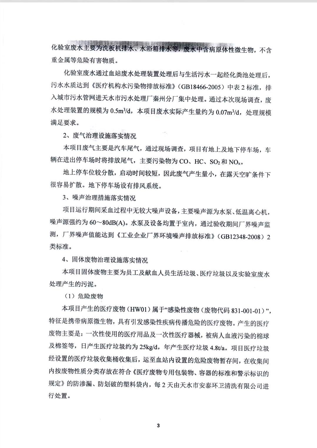 根据《国务院关于修改〈建设项目竣工环境保护管理条例〉的决定》(国务院令第682号),以及环保部《关于发布<建设项目竣工环境保护验收暂行办法>的公告》(国环规环评﹝2017﹞4号),现将天水市中心血站整体搬迁项目竣工环境保护验收内容(包括验收监测报告、验收意见)公示如下: