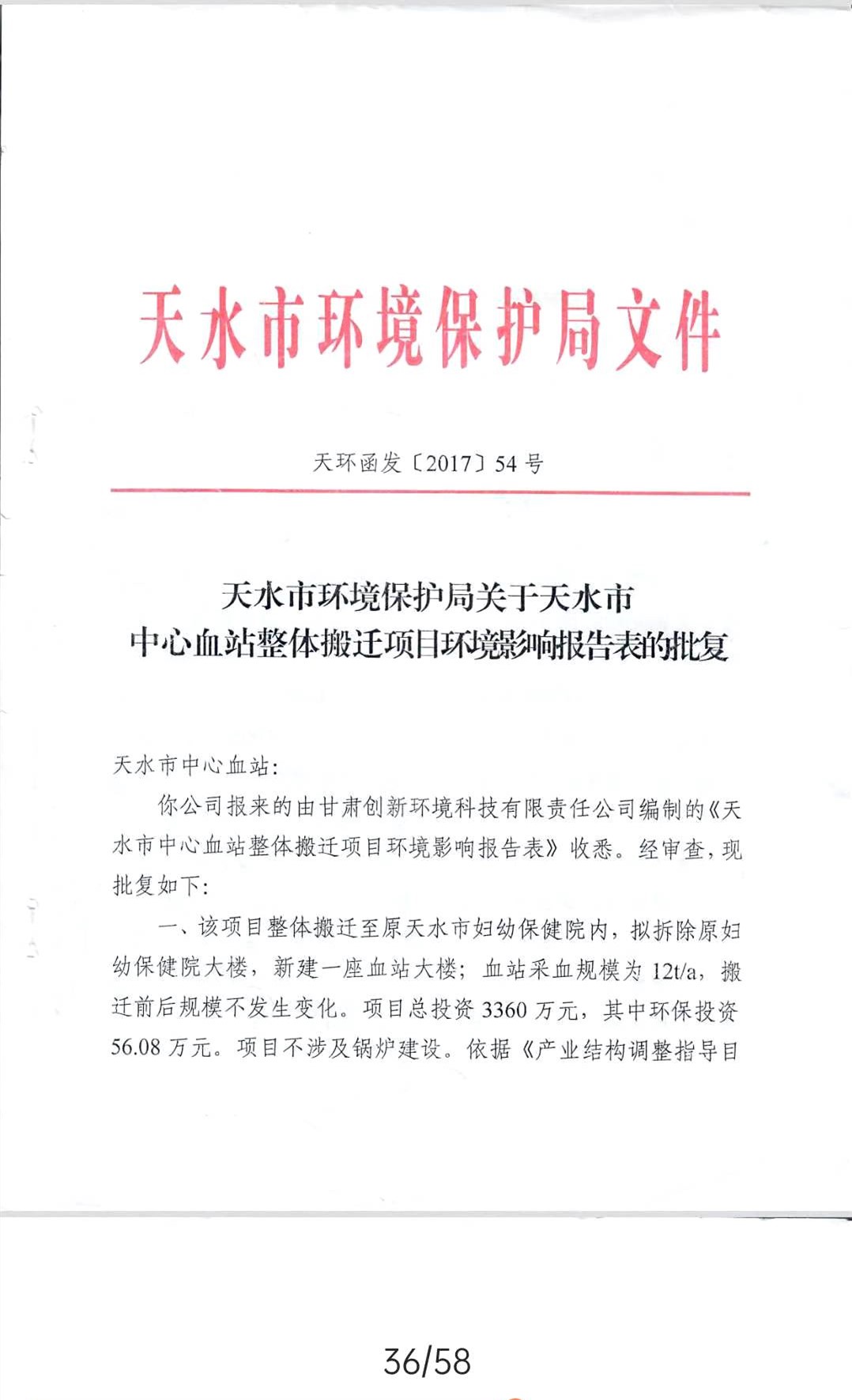 项目名称:天水市中心血站整体搬迁项目