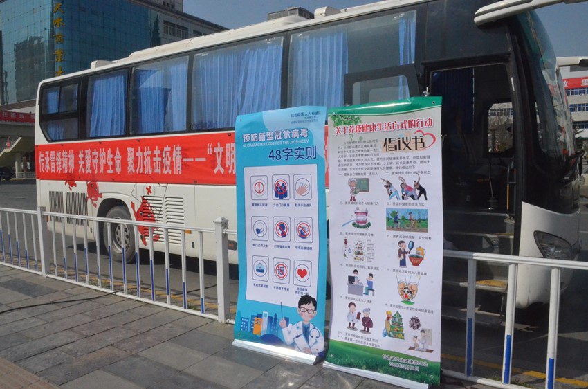 一是通过流动采血车、爱心献血屋,面向献血者发放“关于养成健康生活方式倡议书”。同时利用天水血站微信公众号、天水血站官网、微信群、天水广播电台制作发布防疫科普宣传知识,普及《甘肃省居民保健知识与技能手册》中的内容,进一步引导人们养成“讲文明、讲卫生、讲科学“的健康生活方式,坚持做到公共场所戴口罩、勤洗手、不聚餐、不串门、不扎堆,把疫情防控最后一公里的工作做好、做实、做到位。