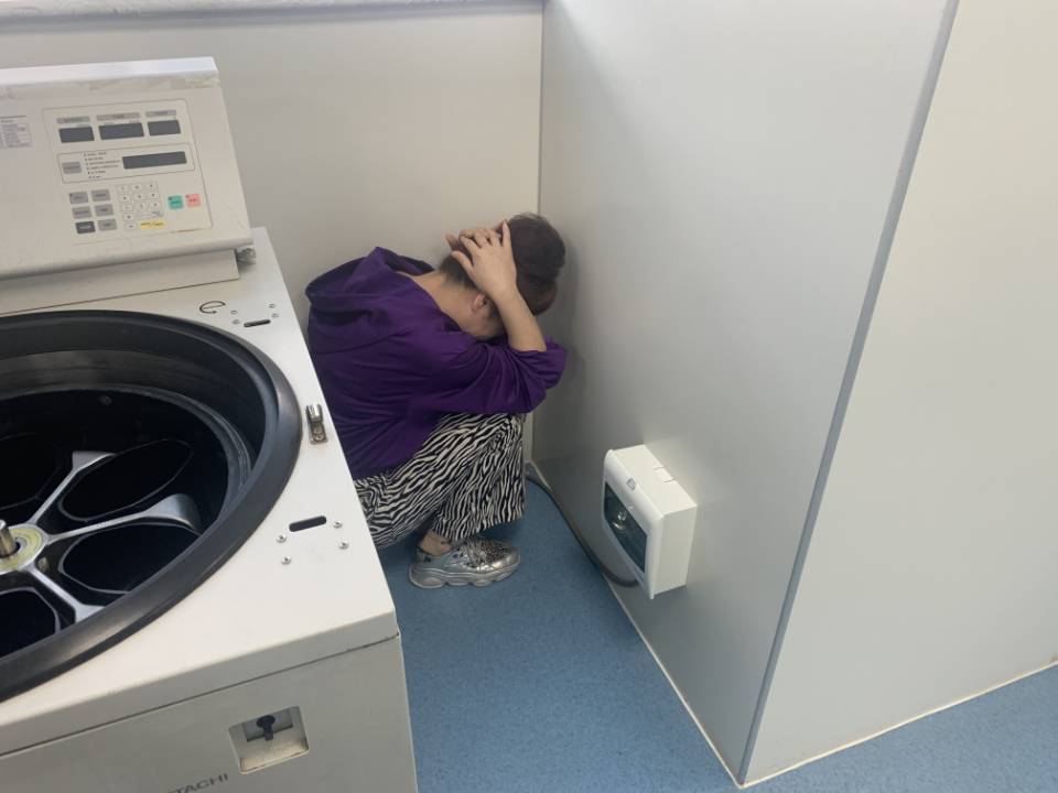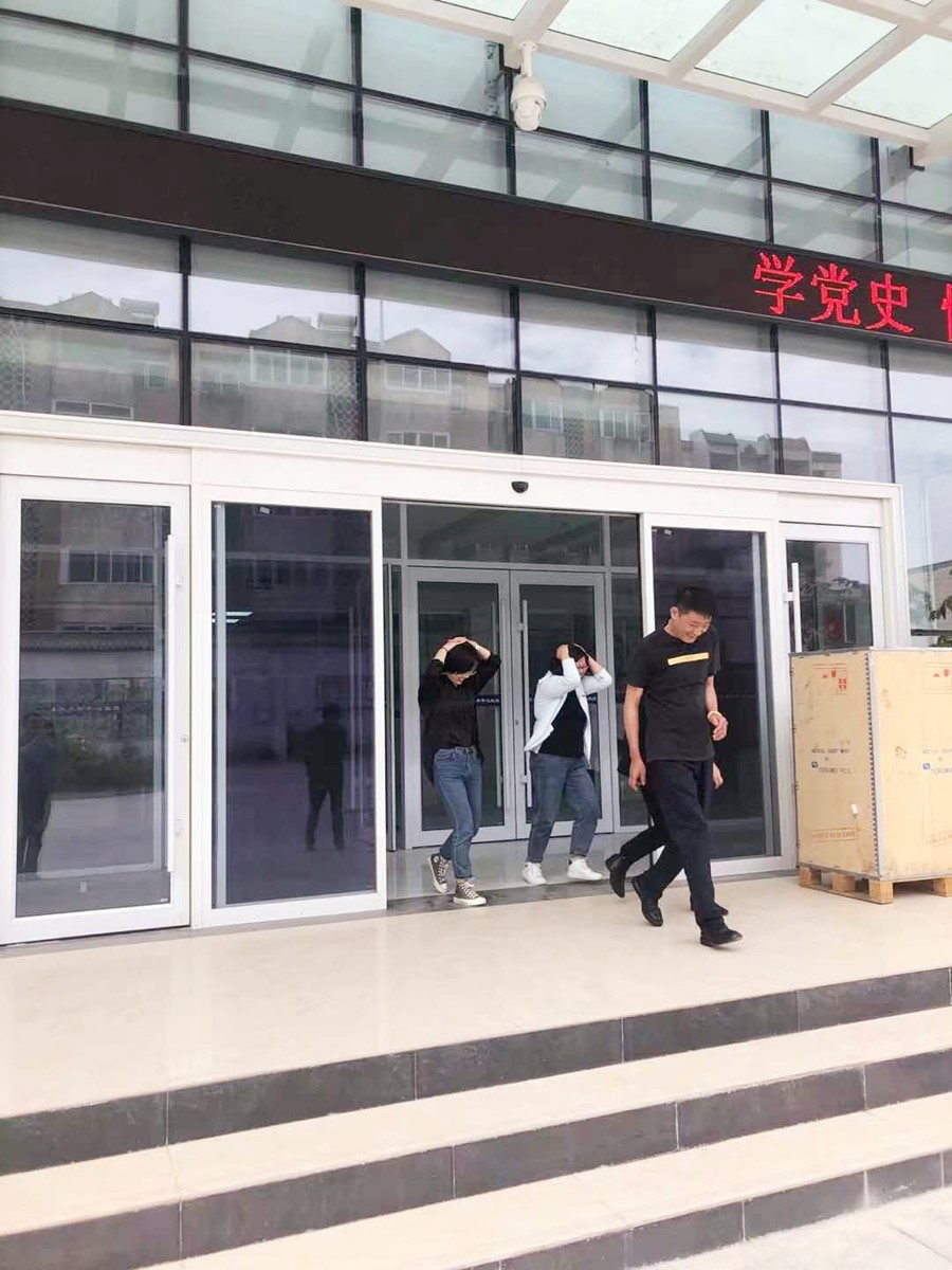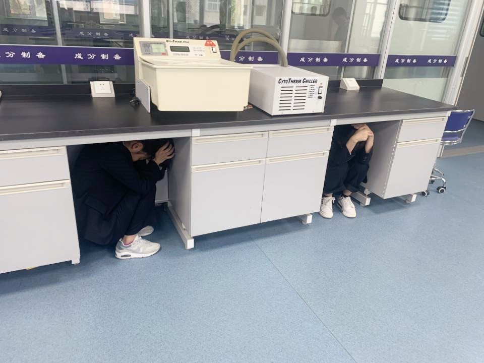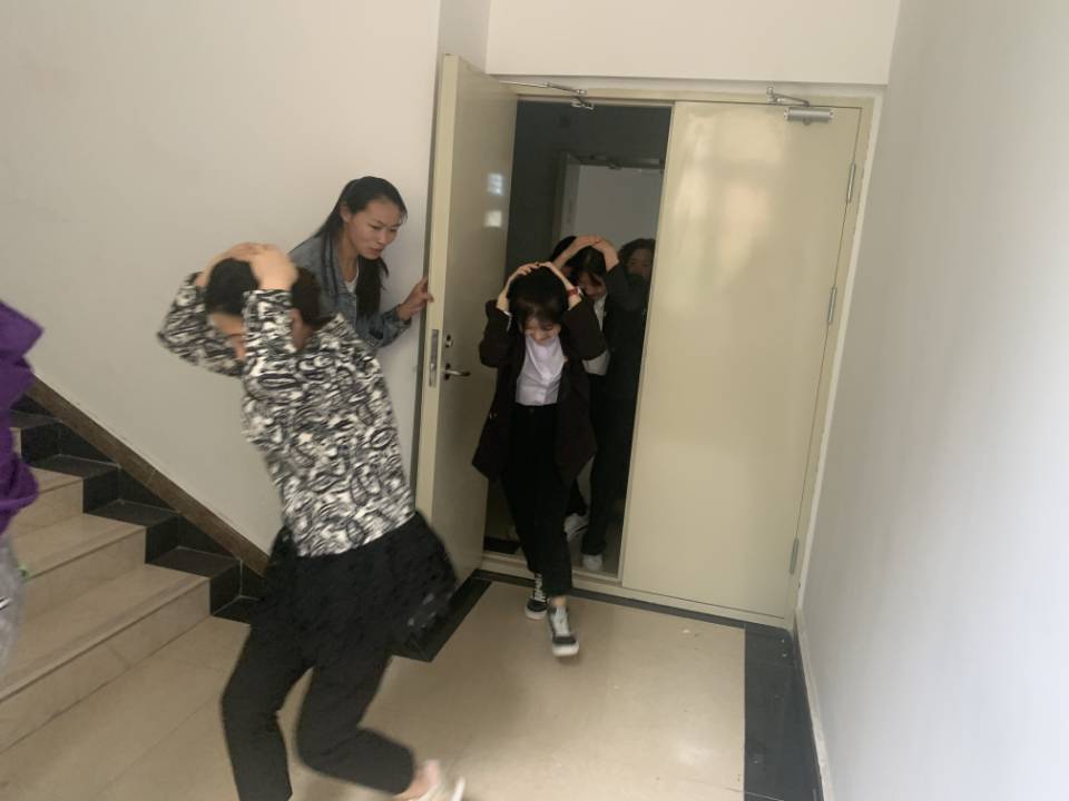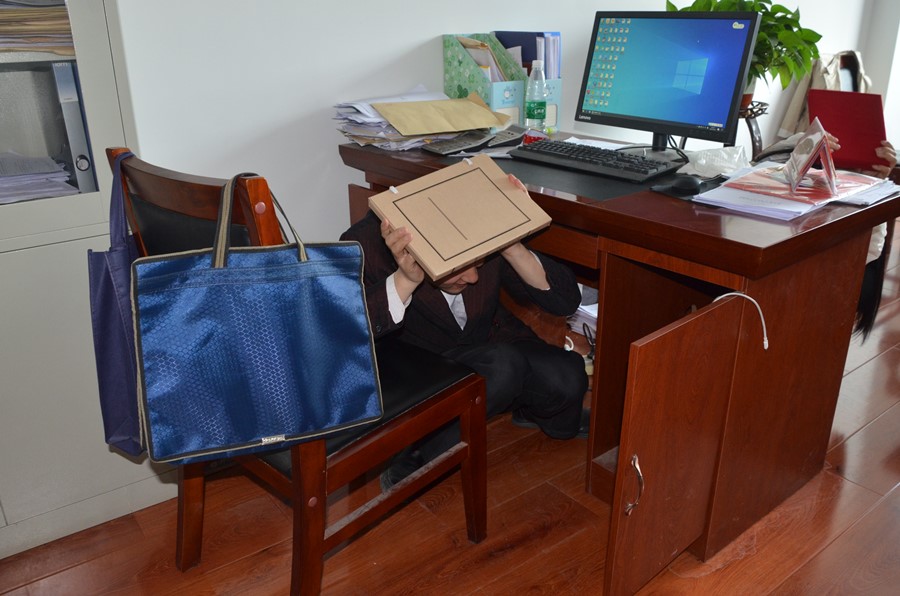 下午3点30分,地震应急演练正式开始,血站全体人员按照方案要求,警报提示后在主震时,采取就地避震,双手抱头钻进办公桌下,主震过后,准备疏散,开始有序撤离,所有人员按照不同楼层,分不同方向降低重心、双手抱头,沿着楼道墙体快速疏散到空旷安全的应急避难场所。