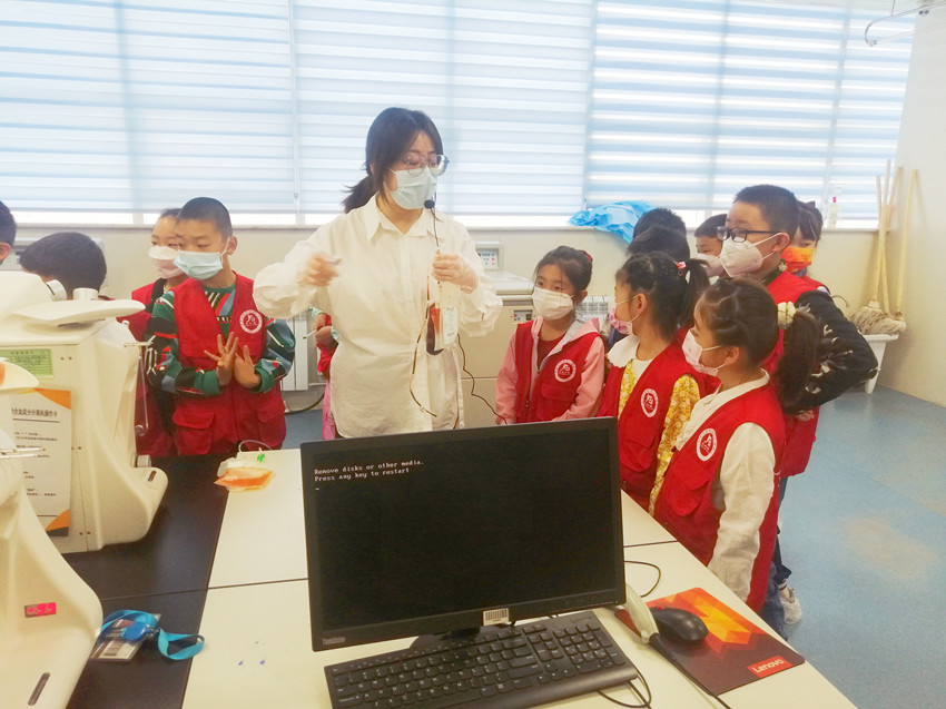 小记者们在血站工作人员的带领下,依次参观了爱心献血屋、供血科、成分科、检验科等科室,观看了无偿献血宣传片。参观过程中,小记者们一边认真听工作人员讲解,一边仔细的记笔记,时不时提出好奇的问题,“血浆为什么看起来像蜂蜜”“冷沉淀凝血因子是治什么病的”“那个看起来像鱼缸的设备是干什么的”等等。通过了解血液常识及血站日常工作内容,加深了对献血工作的重要性的认知,让小记者在了解到无偿献血知识的同时,深刻体会爱心传递与生命接力的意义。