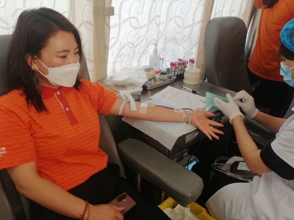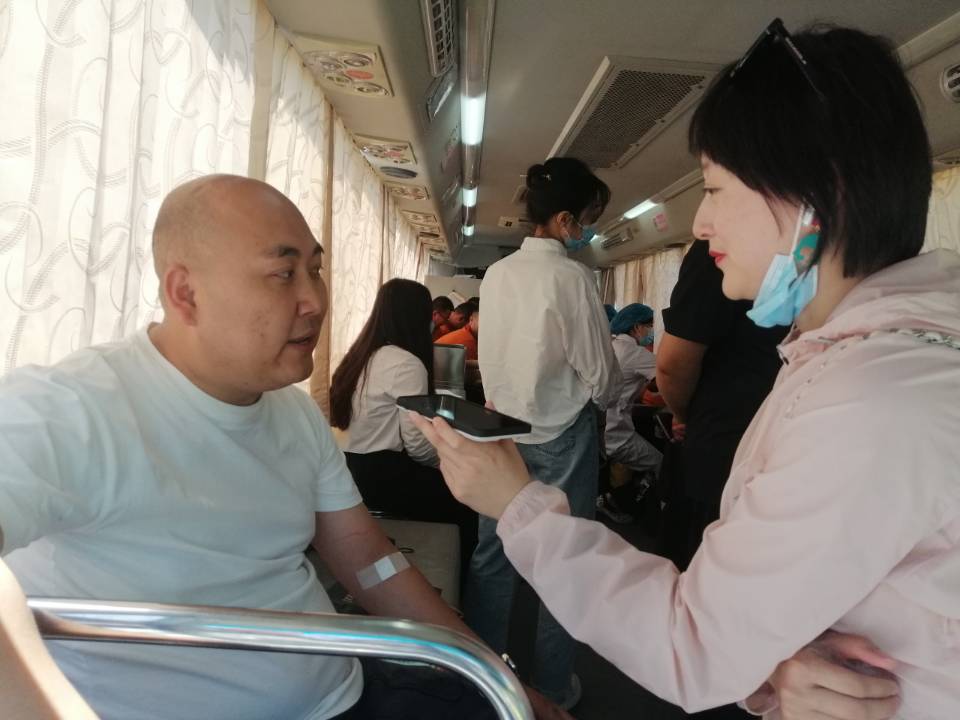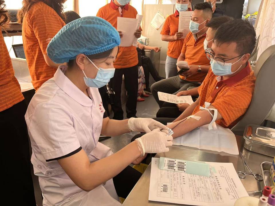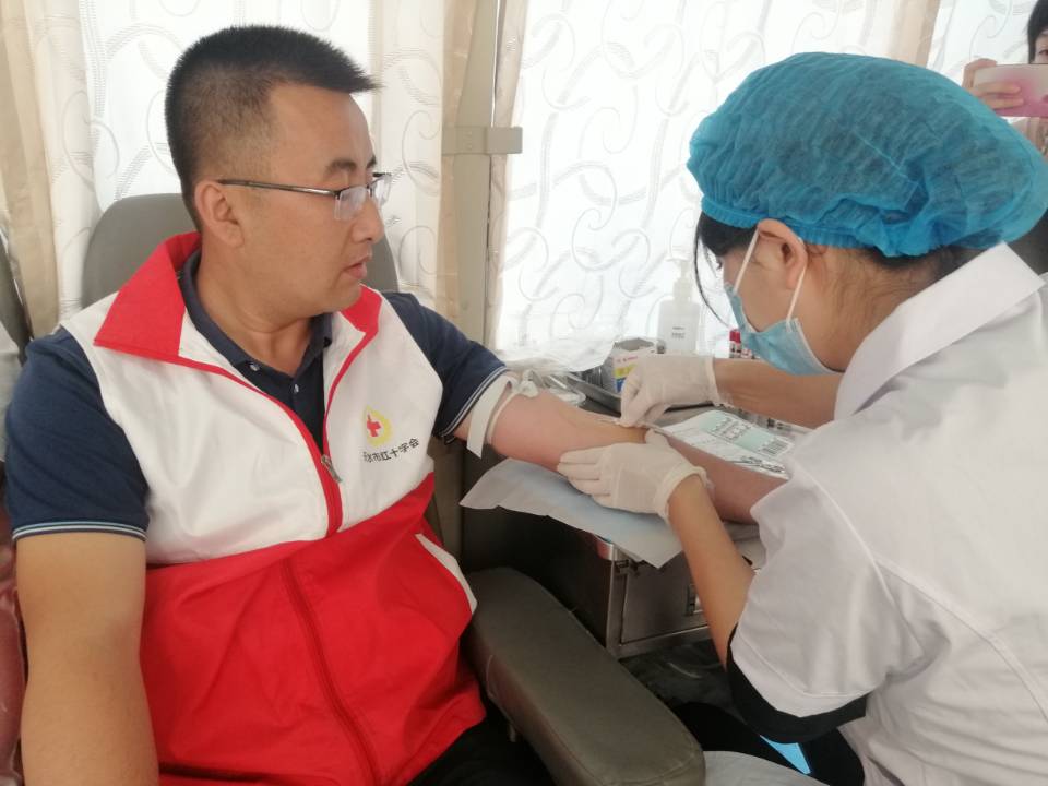 市红十字会工作人员一边开展宣传工作,一边参与献血活动,以实际行动弘扬着“奉献、友善、博爱”的红十字精神。