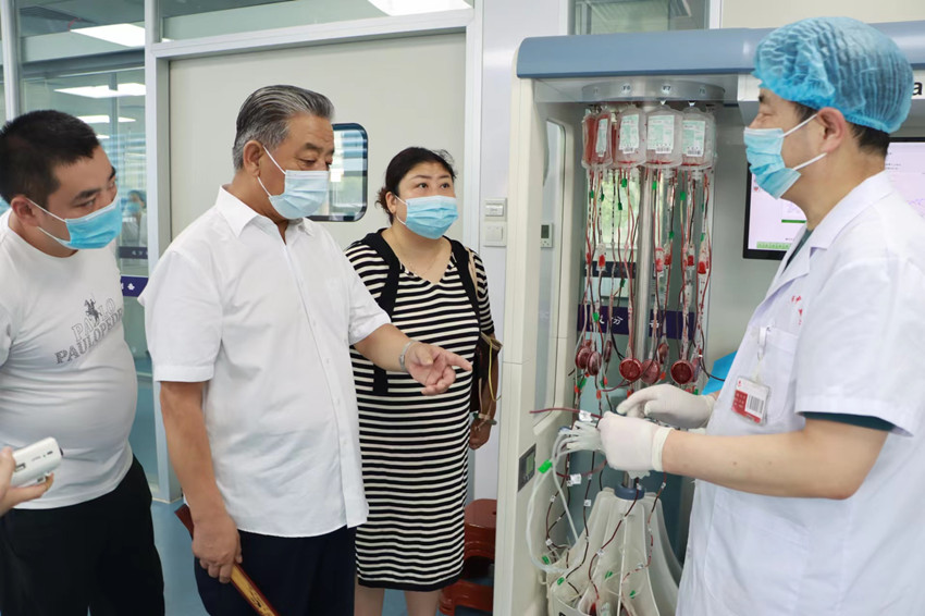 参观过程中,志愿者们认真聆听,不断提问交流,对每个流程产生出浓厚的兴趣。在讲解员的引导下,大家依次参观了采供血各业务科室,近距离观看了血液的检测、制备、储存、发放等全部流程,了解了一袋血液的生命历程。