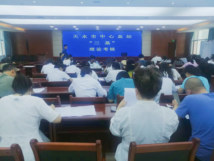 为进一步巩固和提升全站职工采供血服务质量,切实提高工作人员专业理论水平,增强比学赶超、爱岗敬业的意识,8月5日,天水市中心血站面向全站职工组织开展基础理论、基础知识、基本技能理论考核。