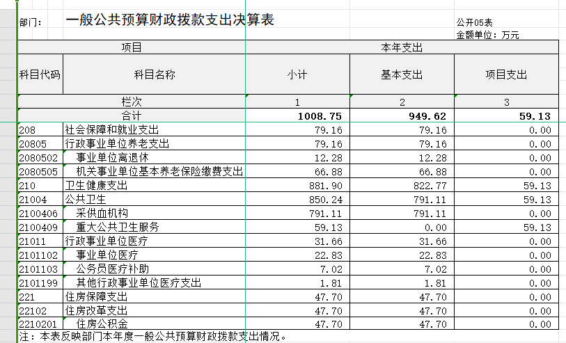 2022年部门决算编制工作顺利完成,经系统公式自动审核无误后上报财政局,经财政局再次审核均无误。2022年财政拨款1008.75万元,事业收入1140.62万元,年末实际支出2147.37万元,其中基本支出2015.46万元,项目支出131.91万元。