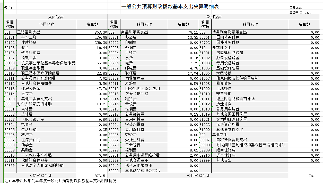 八、基本支出:指为保障机构正常运转、完成日常工作任务而发生的人员经费和公用经费。其中:人员经费指政府收支分类经济科目中的“工资福利支出”和“对个人和家庭的补助”;公用经费指政府收支分类经济科目中除“工资福利支出”和“对个人和家庭的补助”外的其他支出。