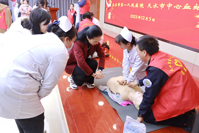 12月5日,在第38个“国际志愿者日”来临之际,天水市护理学会党支部、第一人民医院第四党支部深入天水市中心血站,共同举办了“关爱生命,救在身边”--急救技能普及进单位志愿行活动。共100余人参加了本次技能培训。随后参观解了血站各科室工作情况并开展了党支部结对共建活动。
