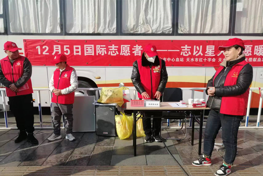 今年是第38个国际志愿者日,为弘扬无私奉献、互助友爱的志愿服务精神,推动无偿献血公益事业发展,12月5日上午,天水市中心血站、天水市红十字会、天水市红十字无偿献血志愿服务队在龙城广场联合开展志愿服务宣传活动。