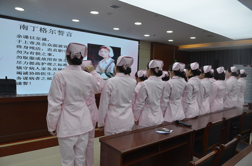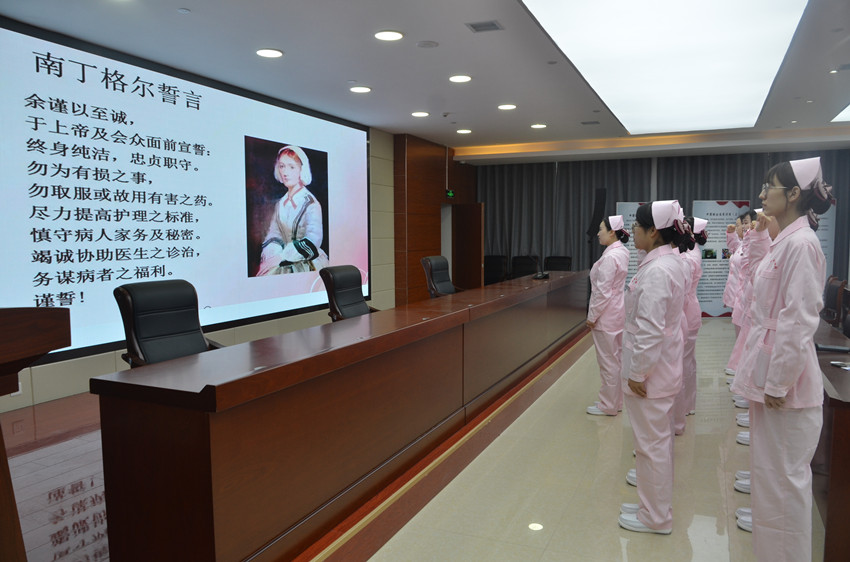 会上,全体护士高举右手,由采血车组长代表带领大家重温了南丁格尔誓言,采血护士代表作了表态发言。