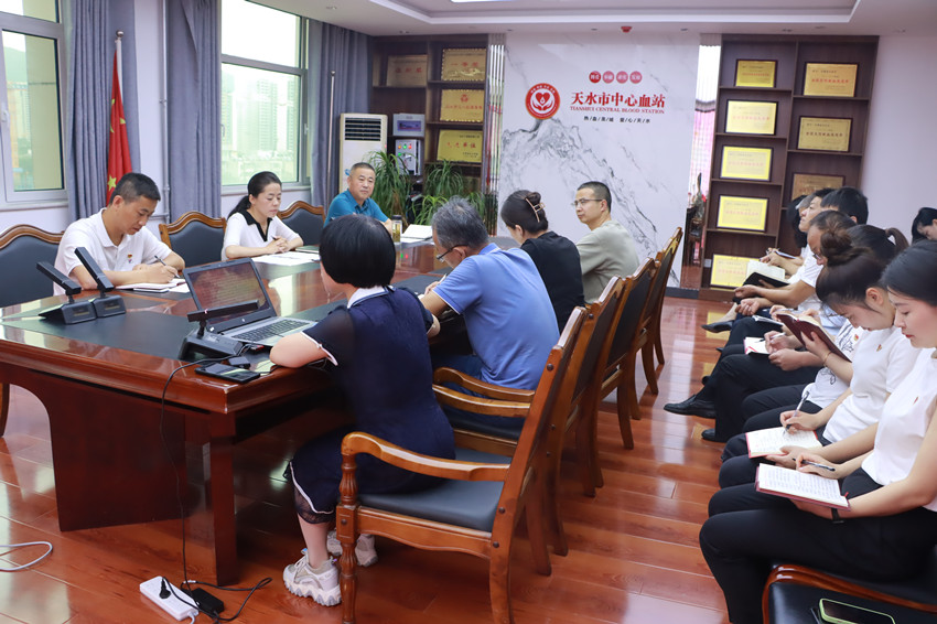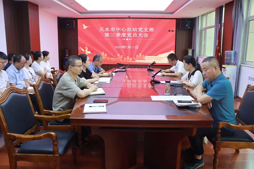7月11日,市中心血站党支部召开2023年度第三季度党员大会。总结上半年党建工作,安排部署第三季度党建重点任务。副站长杨双六主持会议,站党支部书记、站长刘雪梅讲话。