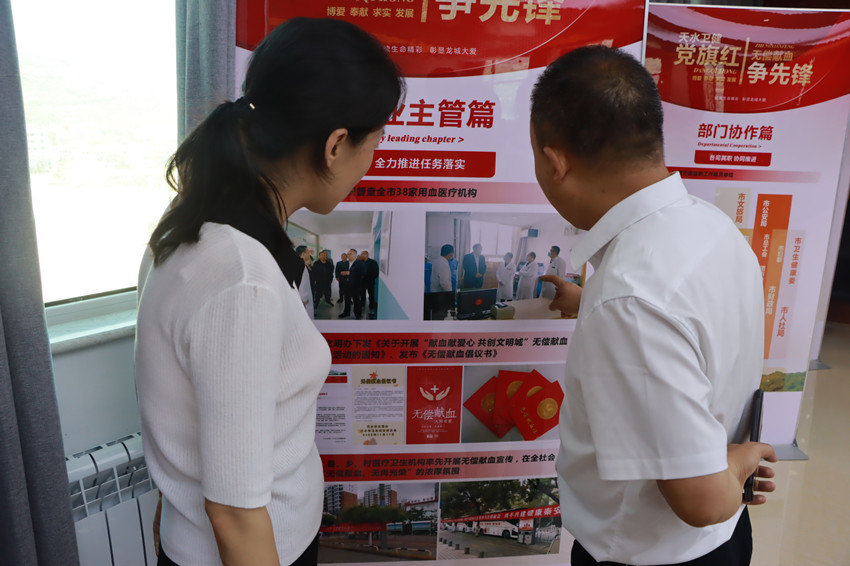 7月4日下午,市卫生健康委第六专项督查组组长、市计生协会副会长魏胜锁一行对天水市中心血站上半年重点工作任务落实情况开展专项督查。天水市中心血站党支部书记、站长刘雪梅同志陪同检查。