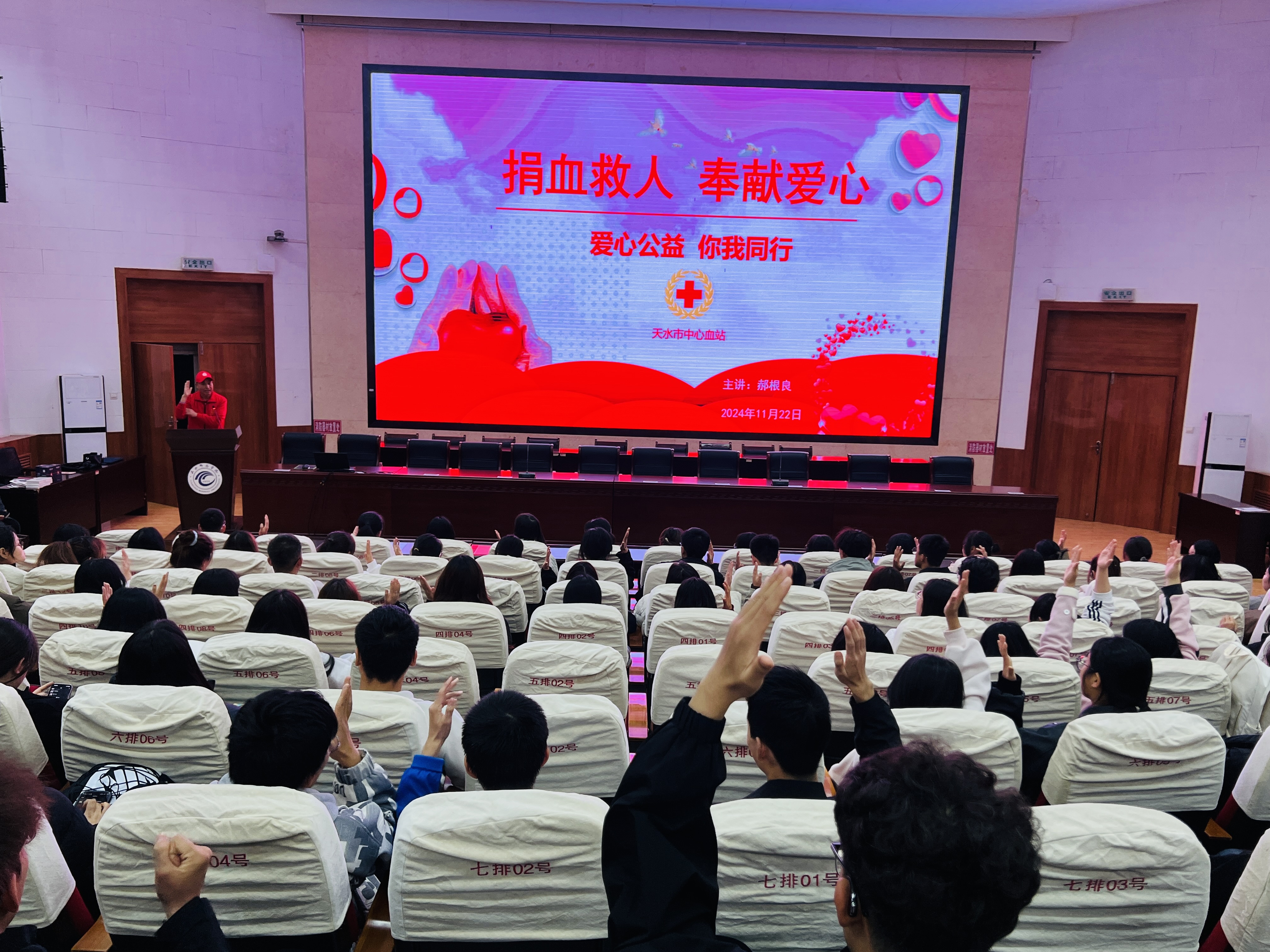 11月22日、25日,天水市中心血站健康科普宣讲团走进天水师范学院,为同学们带来了一场关于无偿献血知识的专题讲座。