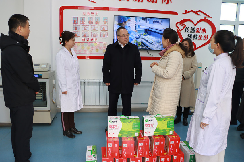 市卫生健康委办公室主任李晓斌、医政科科长刘曼等一同慰问。