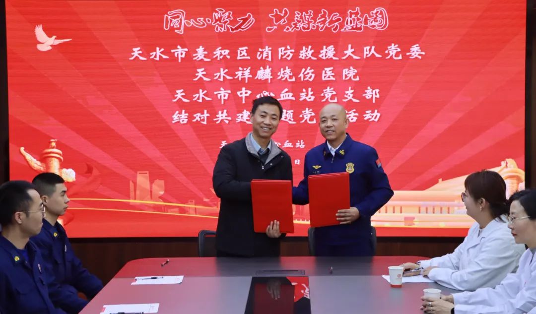 活动最后,天水市麦积区消防救援大队党委与天水市中心血站党支部共同签订共建协议。根据协议,双方将在党建引领下,围绕无偿献血宣传、志愿服务、应急保障等方面展开深度合作,定期组织交流活动,共同提升服务社会能力,推动无偿献血事业高质量发展。