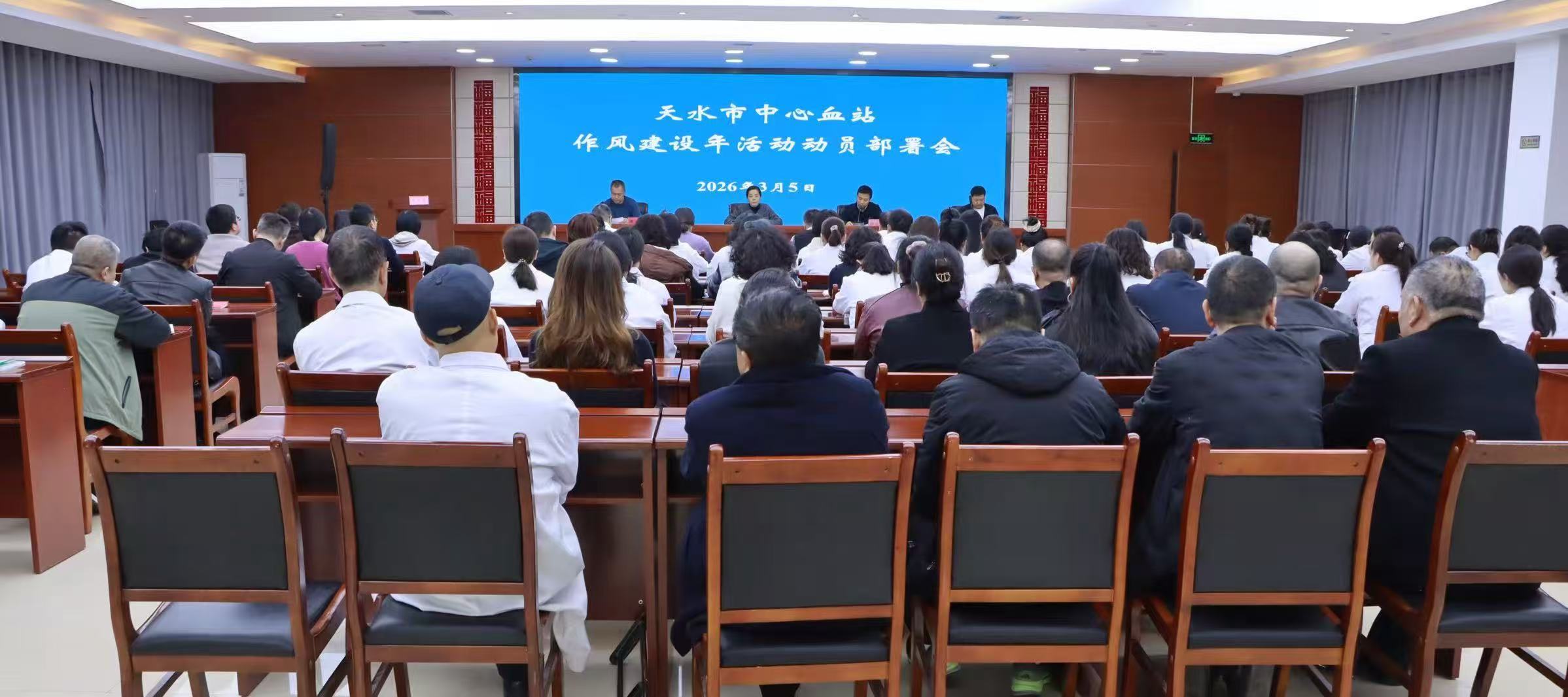 为贯彻落实全市作风建设年活动相关部署要求,3月5日,天水市中心血站召开作风建设年动员部署会议。全站干部职工共90余人参加会议。
