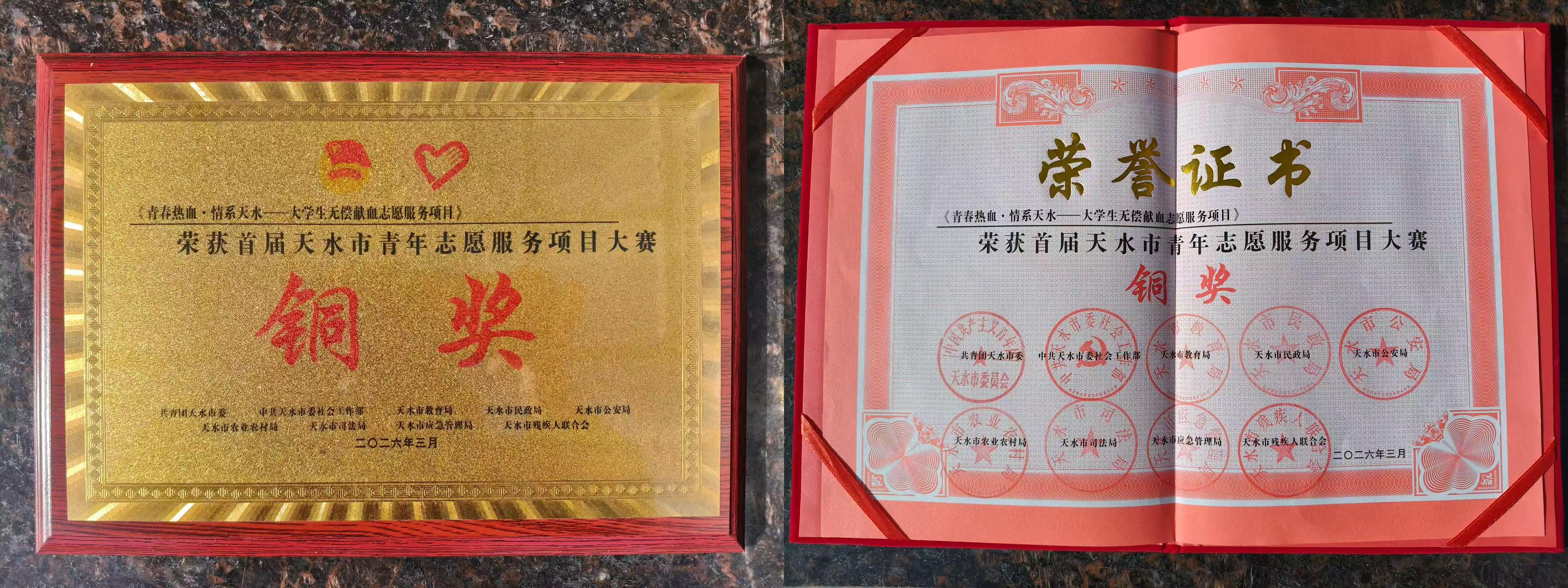 近日,市中心血站申报的“青春热血・情系天水”——大学生无偿献血志愿服务活动”凭借扎实的服务成效、创新的运营模式和显著的社会价值,在众多优质项目中脱颖而出,荣获大赛铜奖,充分彰显了无偿献血公益领域青年志愿力量的责任与担当。