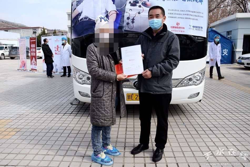 2月23日下午,来自秦州、麦积、清水的三位新冠肺炎康复患者陆续走上采血车,分别献出1个单位(200毫升)“抗疫”血浆,用于重症、危重症新冠肺炎患者的医疗救治。