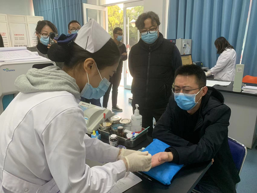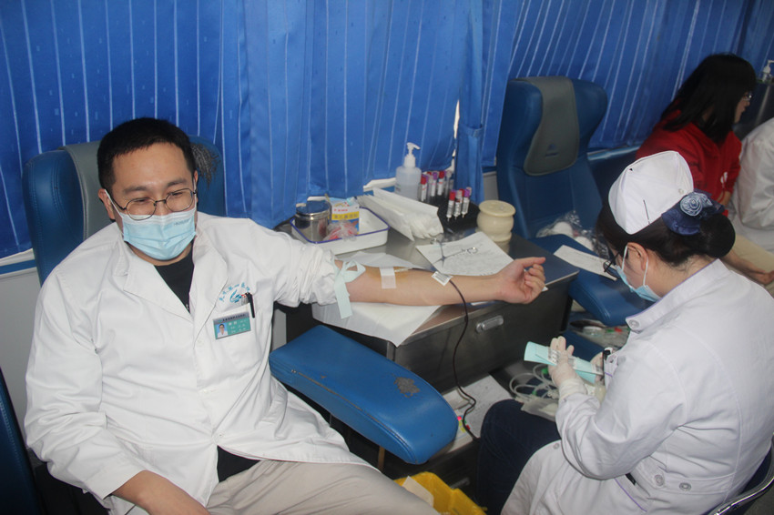 活动现场,等待献血的干部职工早已自觉排起长队,填表、体检、进屋献血,一切有条不紊地进行。走进献血屋,只见屋内座无虚席,“来,别紧张,攥紧拳头。放开,对,就这样,反复几次……记得献完血后多喝水,今天这只手不要提重物。”血站工作人员一边叮嘱着并熟练地为献血者扎针。