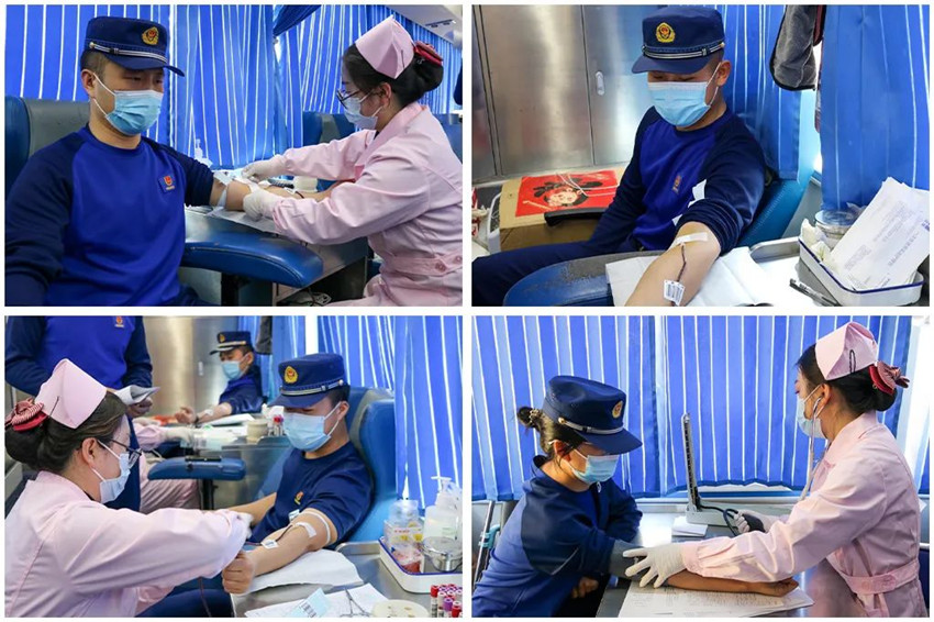 献血现场,在工作人员的指导下,蓝焰青年们依次填写献血登记表、测量血压、抽血化验,经血液检验合格后进行献血。当滚烫殷红的血液带着体温,带着爱心流入贮血袋时,一张张质朴的脸上流露出自豪的笑容。献血队伍中,既有多年的老党员,也有刚入队的新同志,大家用无私奉献乐于助人的学雷锋志愿服务精神,践行“火焰蓝”为人民服务的初心,彰显新时代蓝焰青年的责任和使命担当。