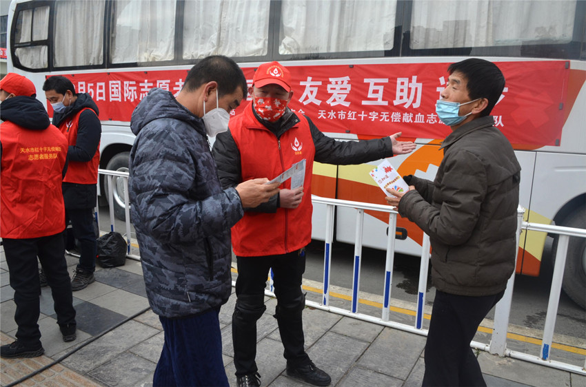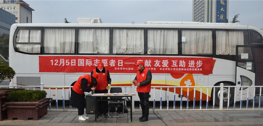 12月5日是第37个国际志愿者日,为大力弘扬“奉献、友爱、互助、进步”的志愿者精神,推动无偿献血公益事业发展,当天上午,天水市中心血站、天水市红十字会、天水市红十字无偿献血志愿服务队在龙城广场开展了庆祝“12.5国际志愿者日”宣传活动。